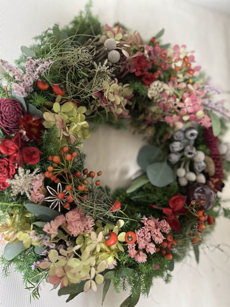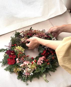 ・フラワーインテリアクラスはクリスマスリース