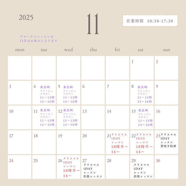 東長崎アトリエ教室・11月21日㈮・22日㈯・26日㈬