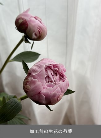 トロワージュの加工方法だとドライフラワー特有の縮みやシワ感が目立ちません。