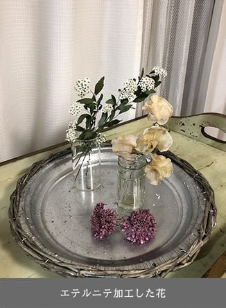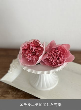 特殊な加工をしたドライフラワー。まるでフレッシュフラワーのような色合いのまま飾ることができます。